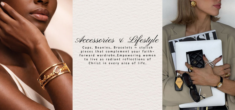 Cups, Beanies, Bracelets — stylish pieces that complement your faith-forward wardrobe.